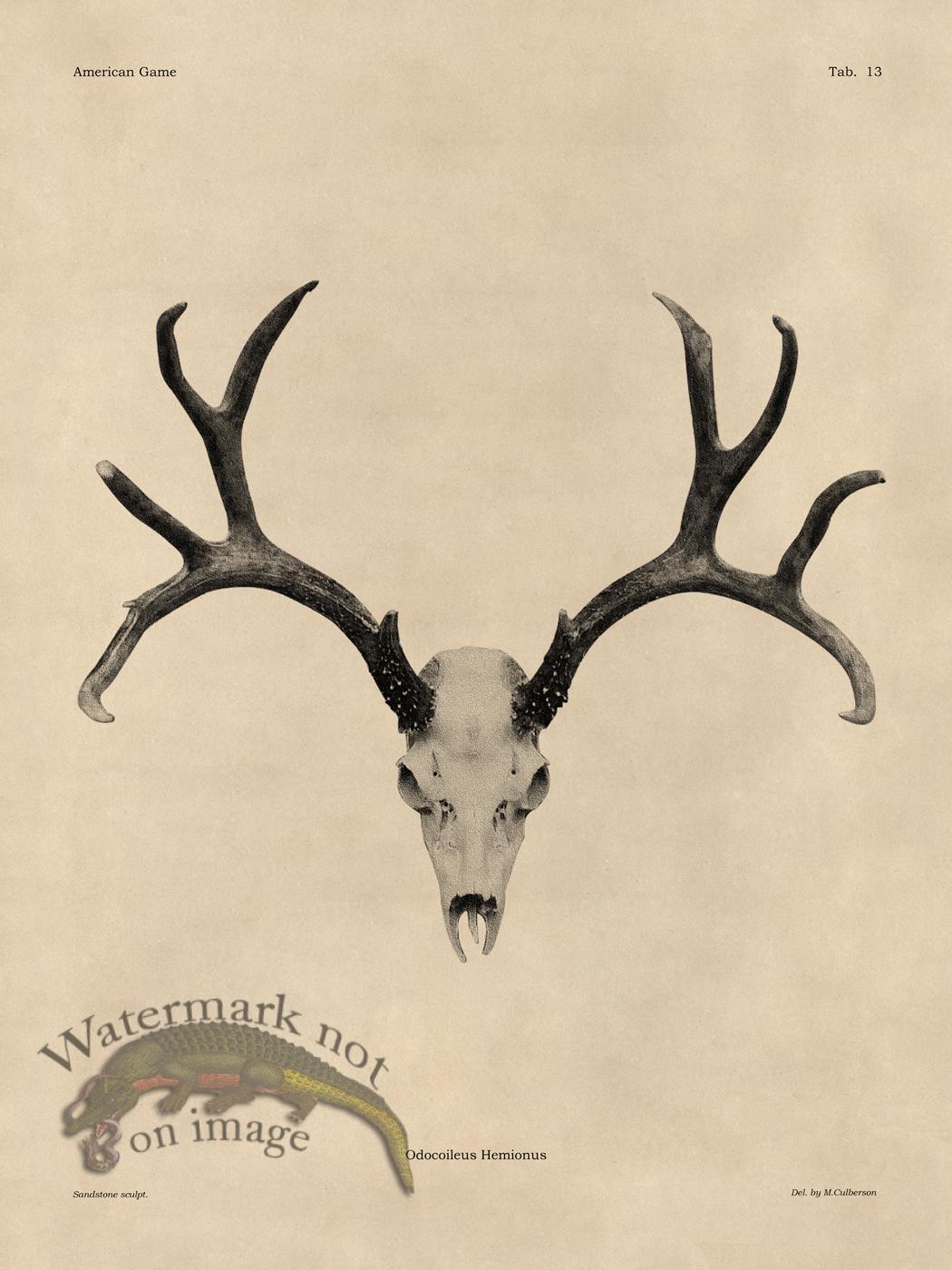 A series of American and European Big Game Skulls. Designed by M. Culberson to appear as stone lithographs from the 1880s. Printed on Acid Free cotton rag paper with archival inks.