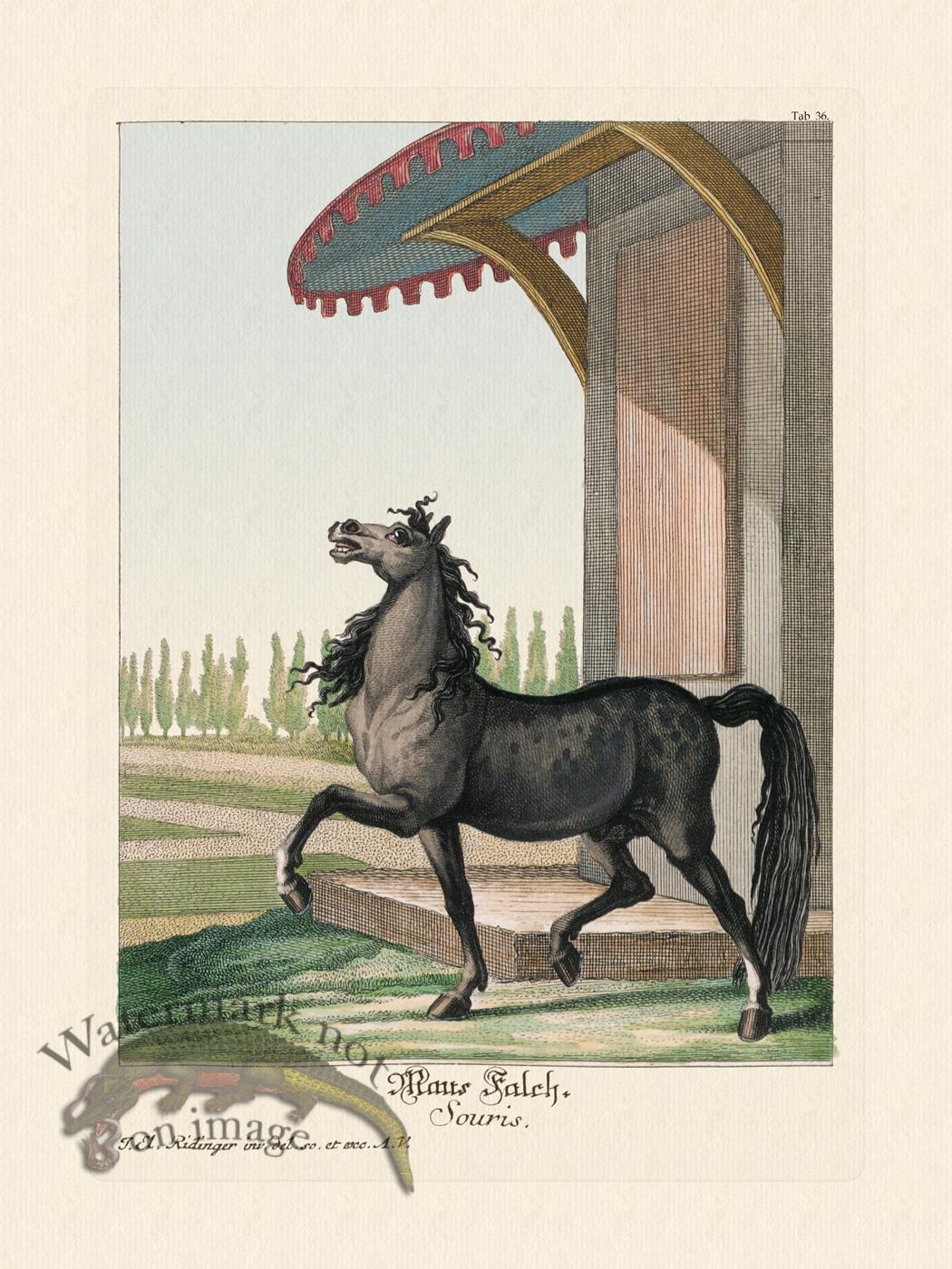 In 1770 Johann Elias Ridinger's sons published a book on his illustrations on horses in color 3 years after his death. We have reproduced this sereis of 50 copper plate engravings with the original color. Our giclee reproductions are printed on acid free cotton rag paper with archival inks.