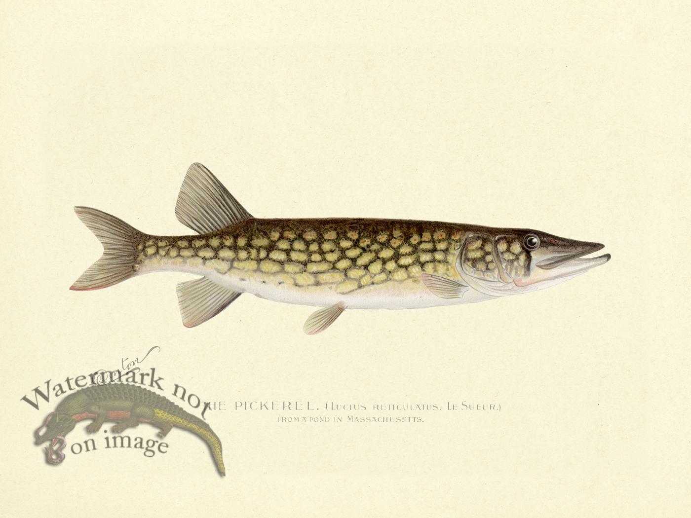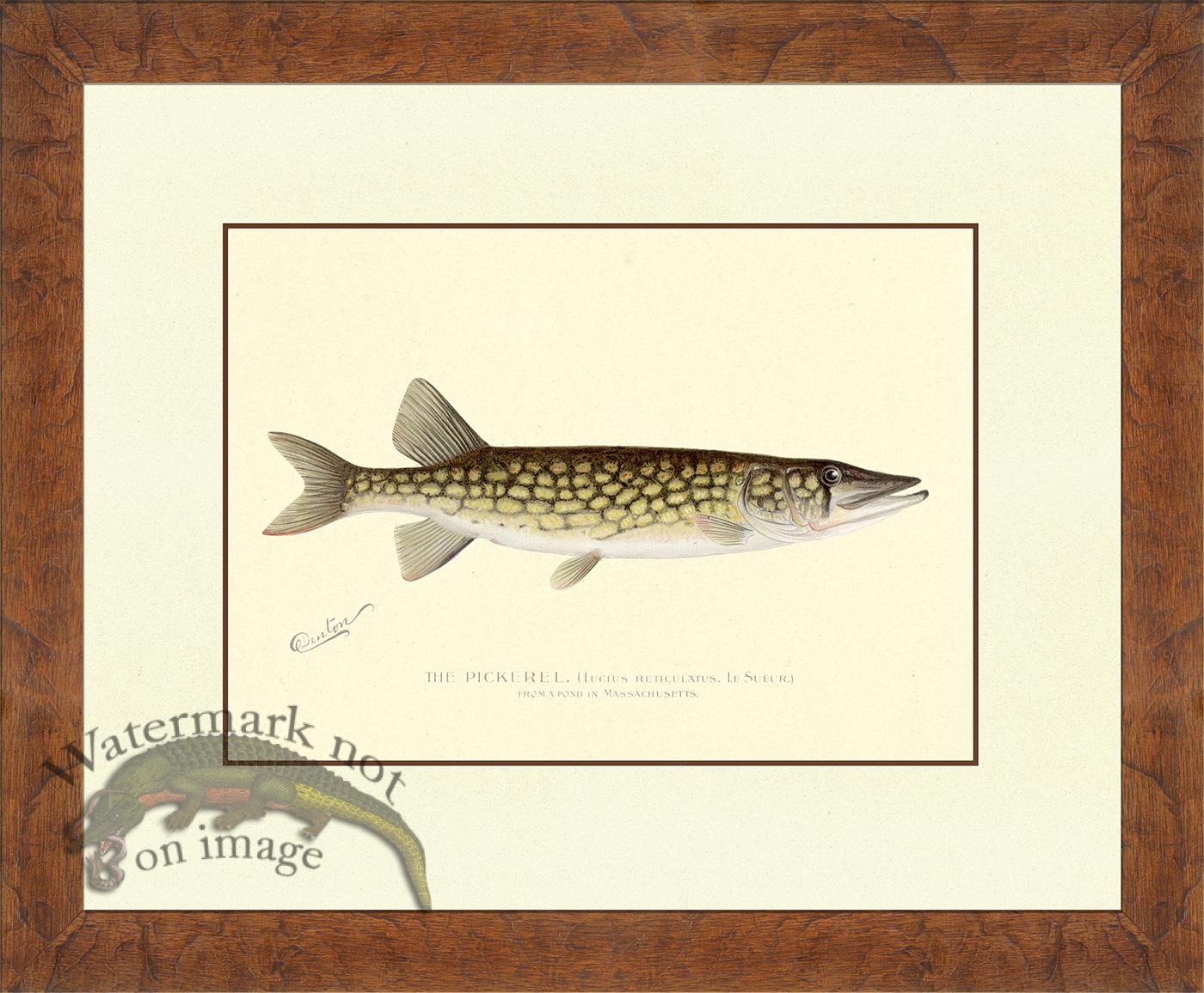 Gicee reproductions of Denton's Fish from the Forest Fish and Game of New York from the 1890s to around 1907. We have also added a few fish to the set for the perfect catch. If you don't see the fish you are fishing for contact us. Printed on acid free cotton rag paper with archival inks. This is our new and improved set with a new size and a great aged background and deeper colors to give the print an aged yet beautiful look. Size 12x16 inches. The print will also fit a 16x20 inch frame with a 3 inch mat.