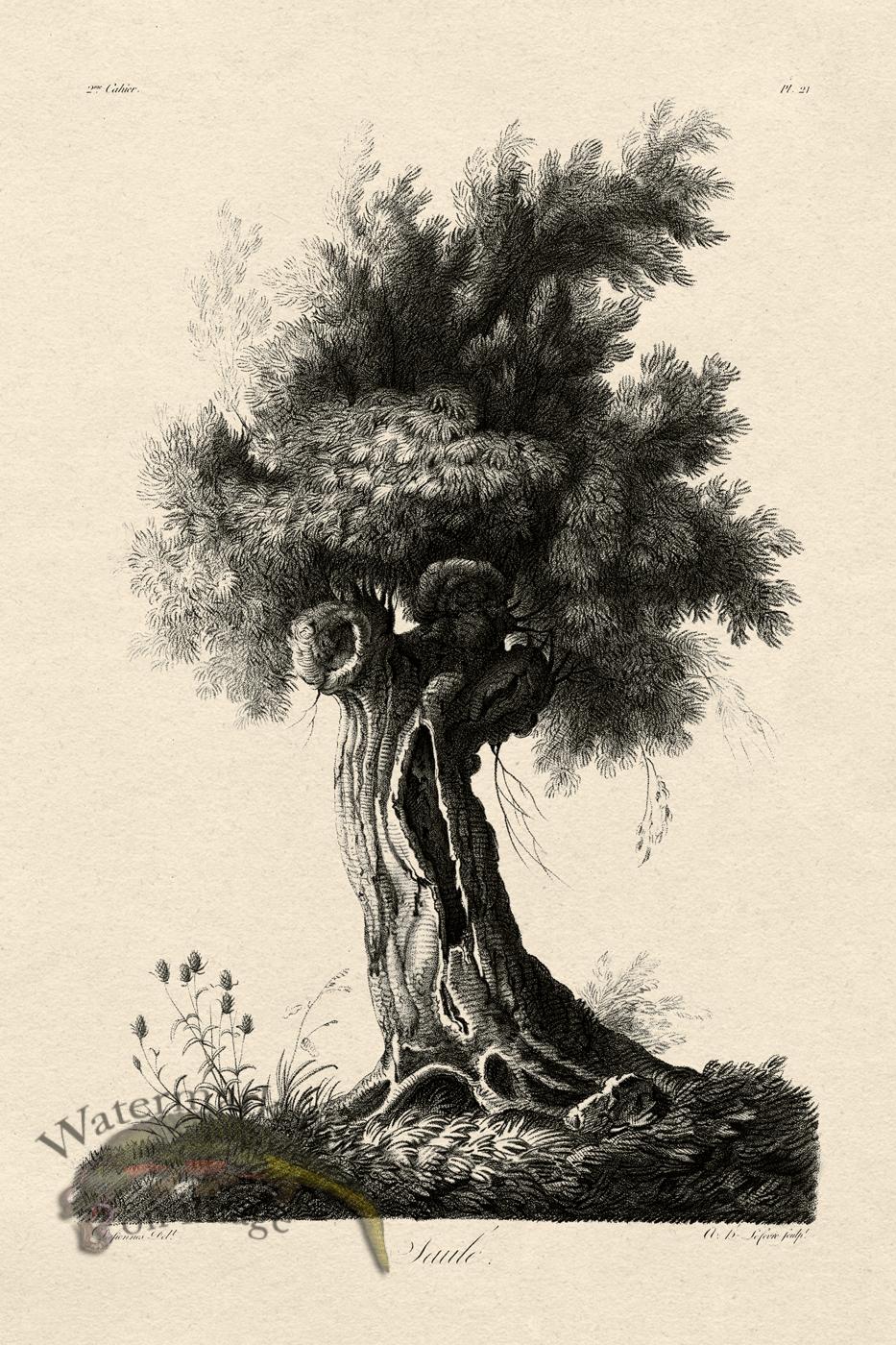 From our amazing collection of antique prints we are proud to offer The Trees of Our Nation by Defiennes for the first time in Giclée format. The original stone lithographs were produced in 1823 in France. Printed on Somerset Velvet acid free cotton rag paper imported from England with arcival inks that will last over 140 years.  This is the highest quality reproduction on the market. We have 4 sizes to choose from so if this size does not work give me a call.