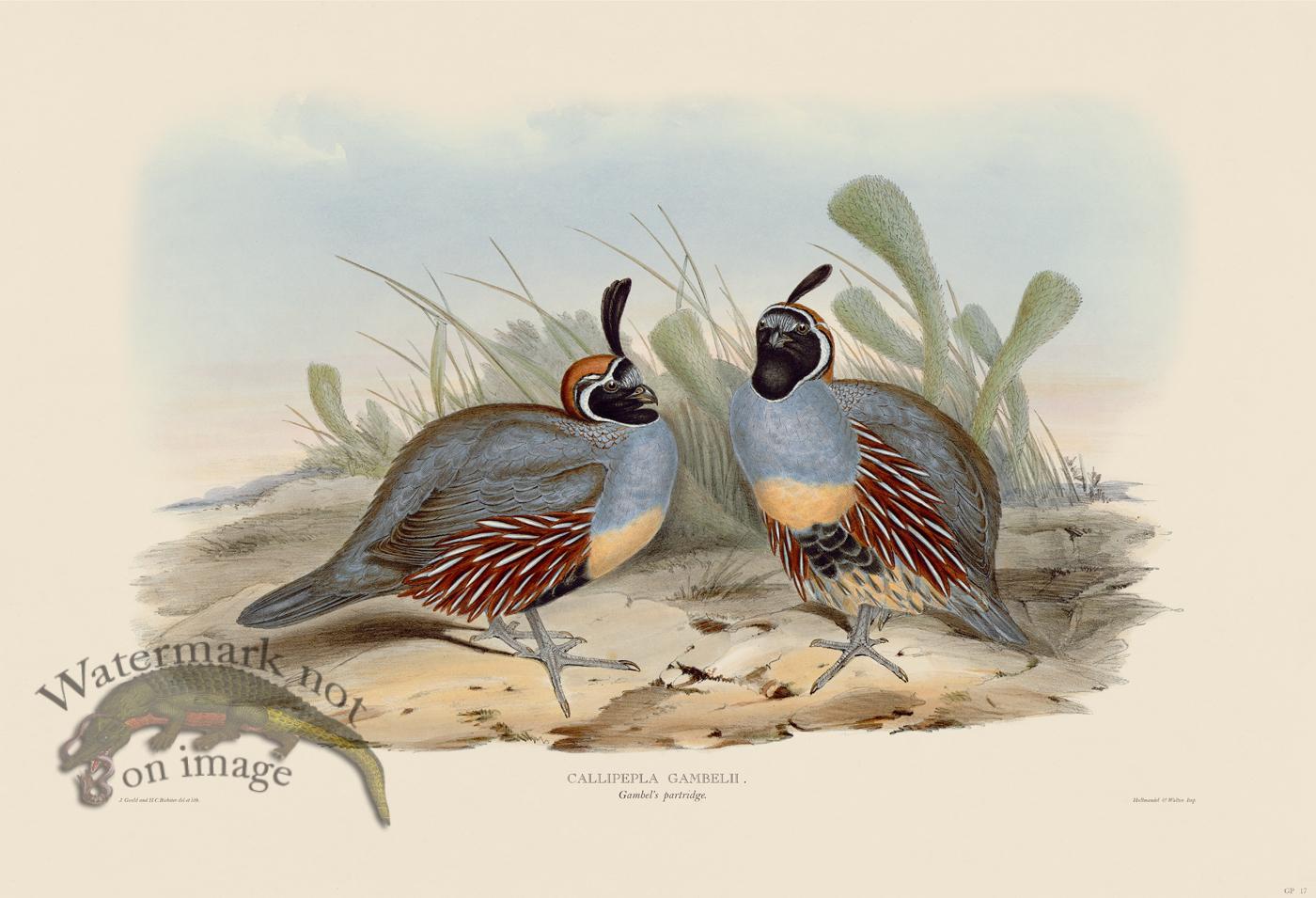 Giclee reproductions from John Gould's A Monograph of the Odontophorinae, or Partridges of America. Digitally remasted by CFA Editions. Printed on acid free cotton rag paper with archival inks.