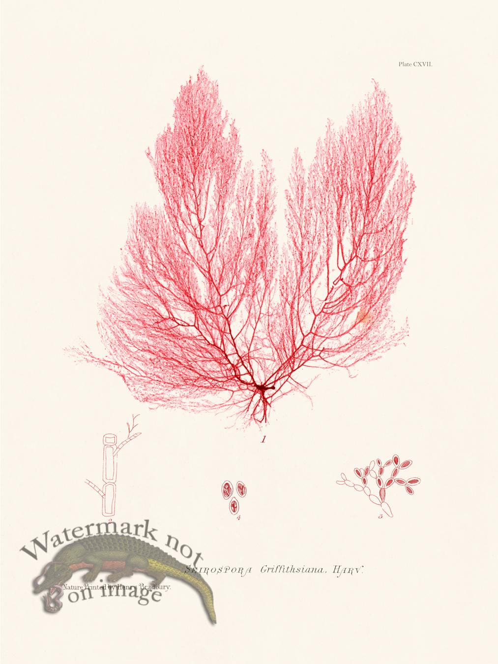 Giclee reproductions of Henry Bradbury Nature Printed Seaweed. The original prints were made from a printing process that used the actual seaweed pressing on the plate to get the amazing designs. We then scaned the antique prints and edited them and print the best reproductions possible. Printed on acid free cotton rag paper with archival inks.