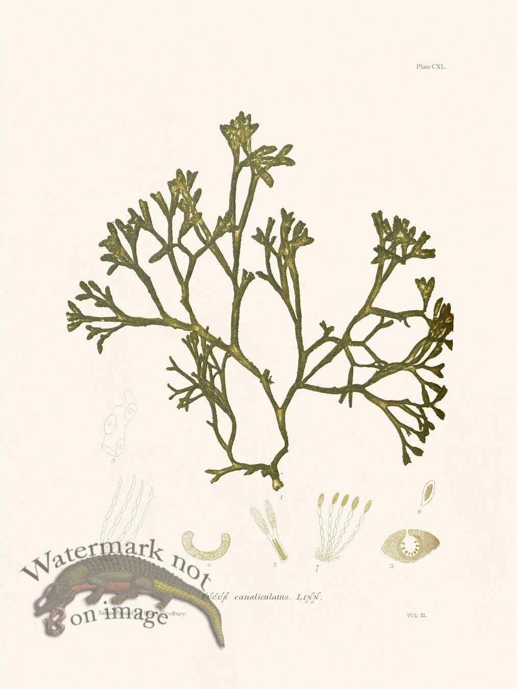 Giclee reproductions of Henry Bradbury Nature Printed Seaweed. The original prints were made from a printing process that used the actual seaweed pressing on the plate to get the amazing designs. We then scaned the antique prints and edited them and print the best reproductions possible. Printed on acid free cotton rag paper with archival inks.