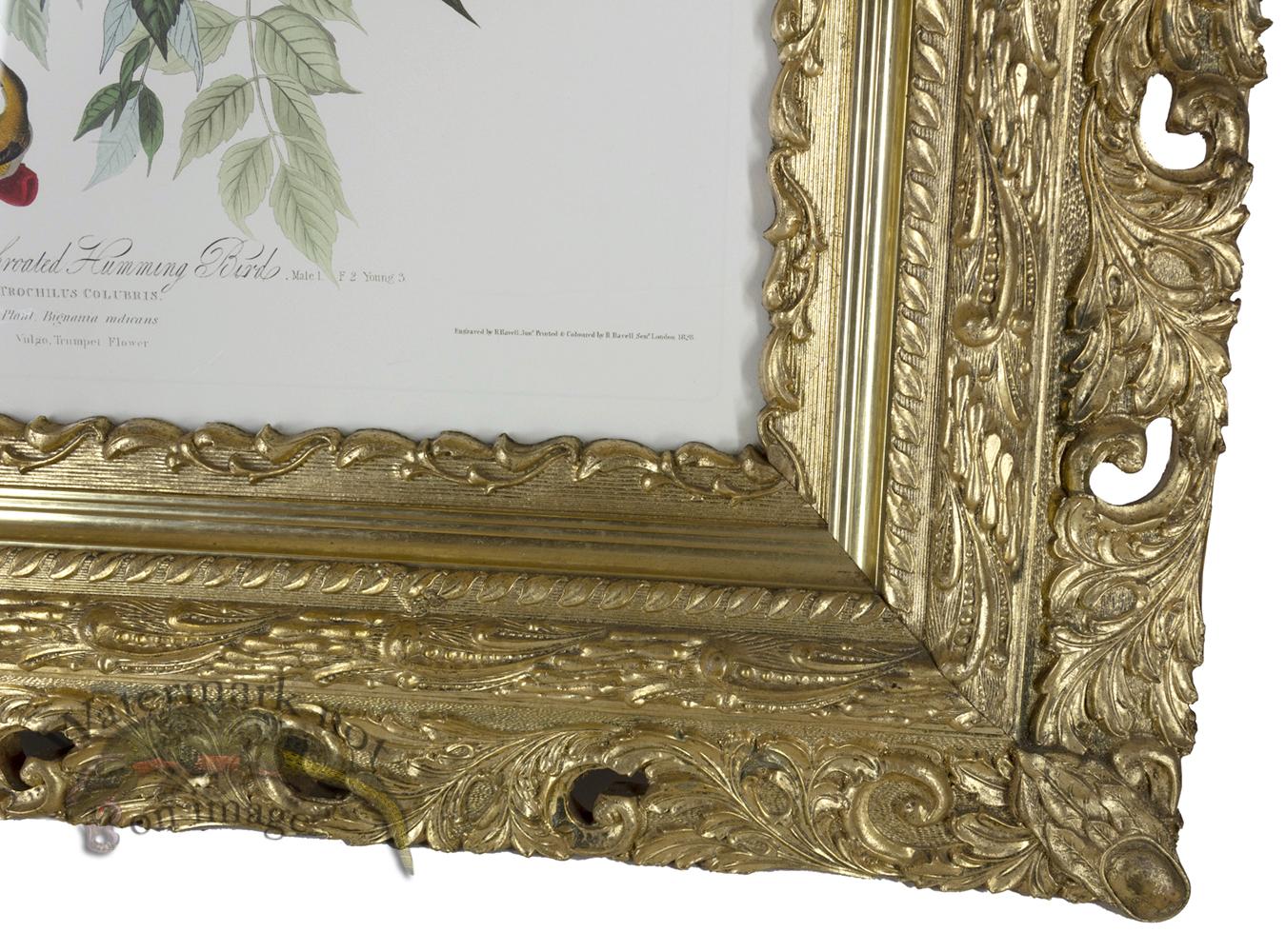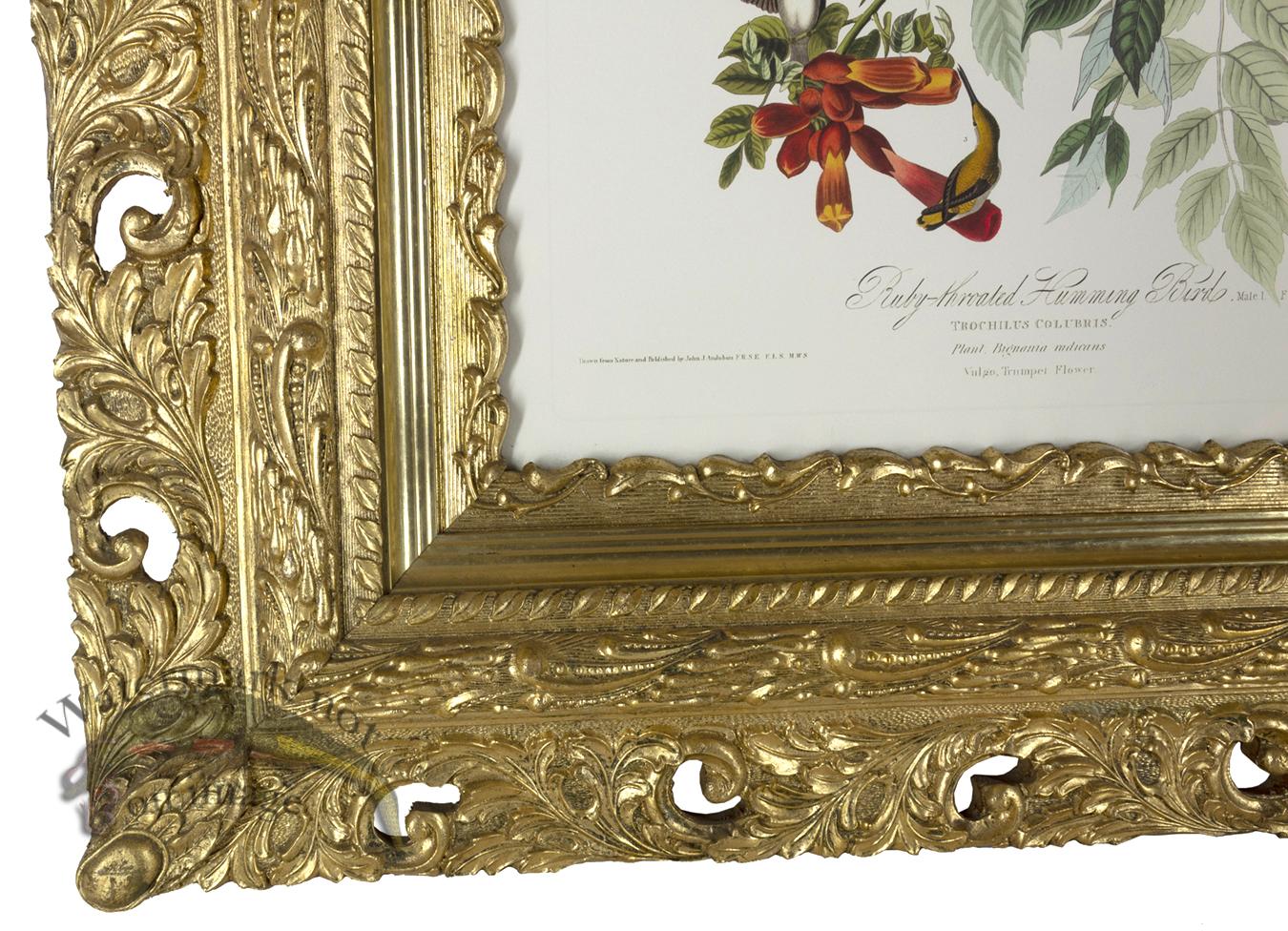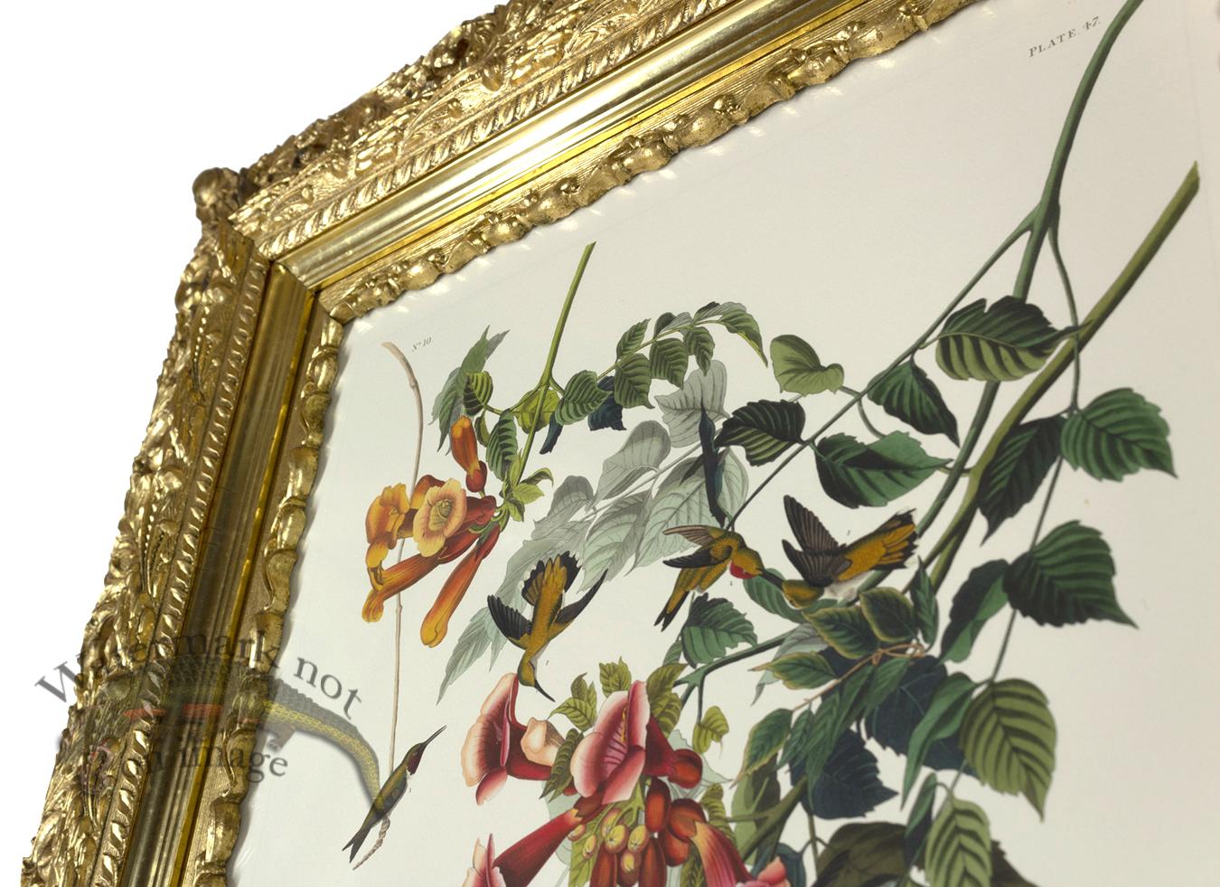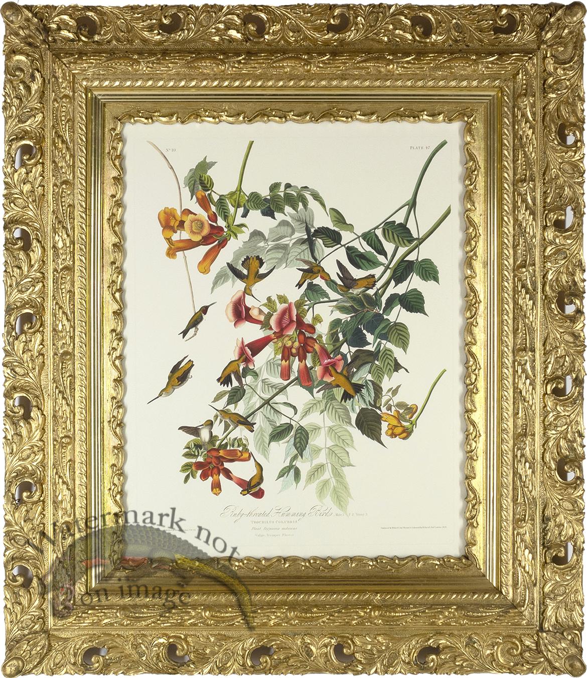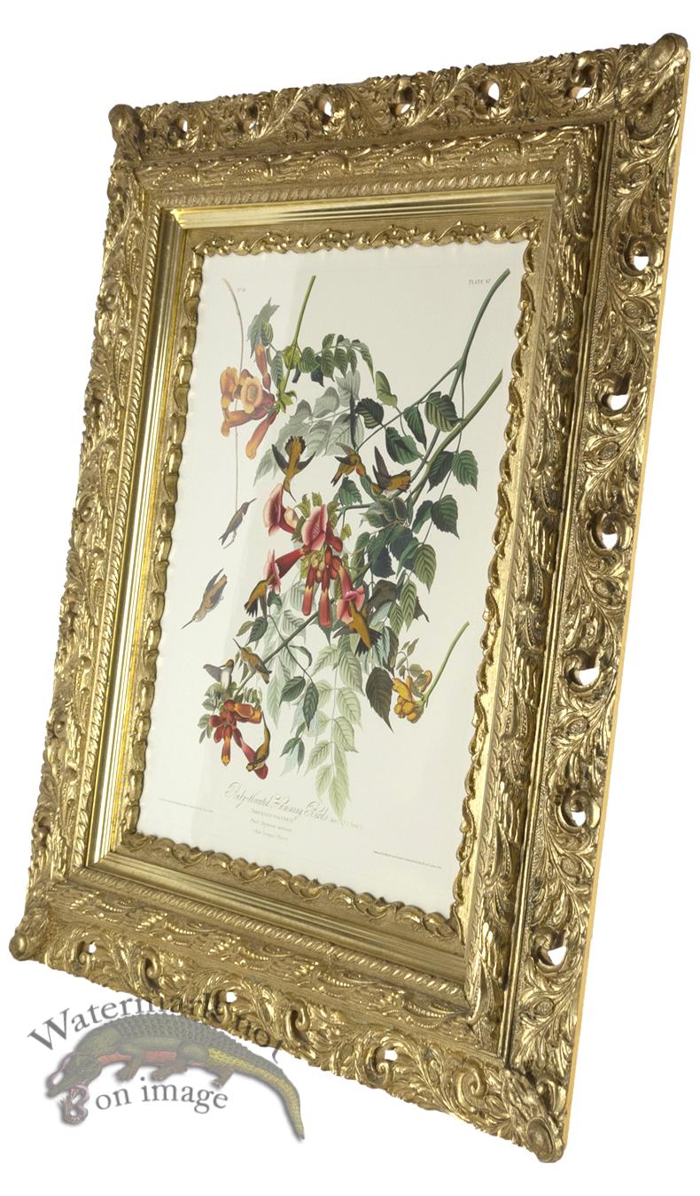 This beautiful Audubon Ruby Throated Hummingbird is a giclee reproduction from CFA Editions and is printed on acid free cotton rag paper with archival inks. The frame is from around the 1900s. This is a one of a kind antique frame in awesome condition.
