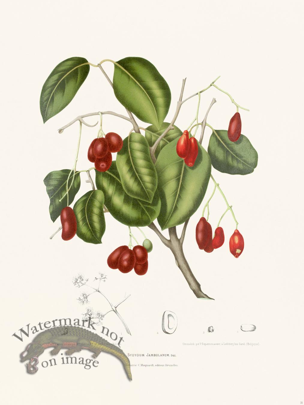 The Horticulture of Java giclee prints are from Berthe Hoola Van Nooten's Fleurs, fruits et feuillages choisis de la flore et de la pomone de l' Ile de Java peints d'après nature. The work was published by C. Muquardt in Brussels between 1863 and 1885. The chromolithograph was completed by P. de Pannemaerk. Each image is of Javense fruits or flowers.  Berthe Hoola Van Nooten, considered a latter-day Maria Sibylla Merian, accompanied her husband to Jakarta (Batavia), capital of Java, in her early twenties. Her husband soon died, and she was left with debt to pay. She had her paintings commissioned into these stunning prints.