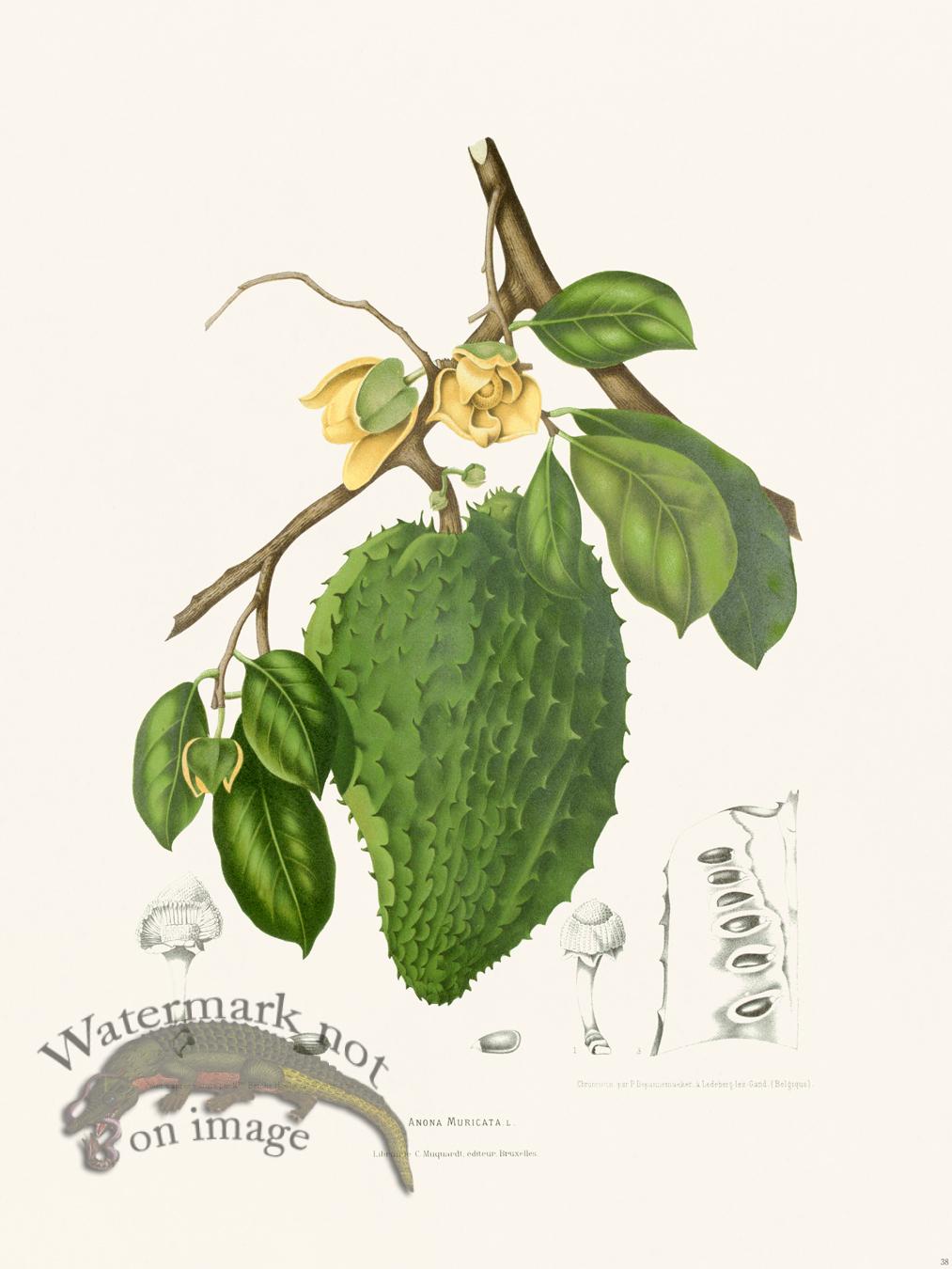The Horticulture of Java giclee prints are from Berthe Hoola Van Nooten's Fleurs, fruits et feuillages choisis de la flore et de la pomone de l' Ile de Java peints d'après nature. The work was published by C. Muquardt in Brussels between 1863 and 1885. The chromolithograph was completed by P. de Pannemaerk. Each image is of Javense fruits or flowers.  Berthe Hoola Van Nooten, considered a latter-day Maria Sibylla Merian, accompanied her husband to Jakarta (Batavia), capital of Java, in her early twenties. Her husband soon died, and she was left with debt to pay. She had her paintings commissioned into these stunning prints.