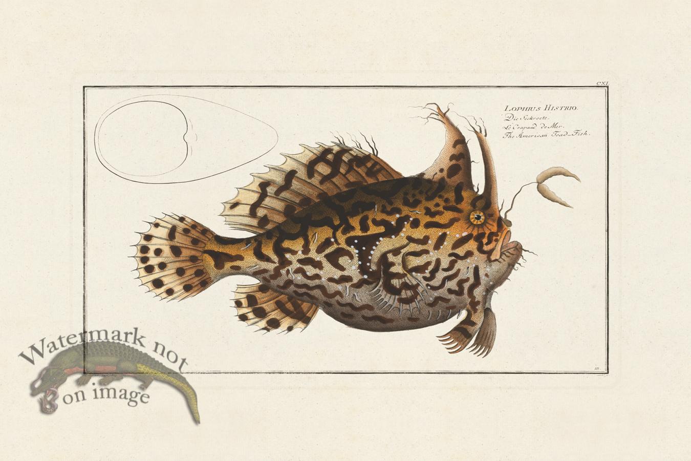 Giclee Reproductions of fish by Marcus Elieser Bloch Fish. Published from the 1780s through 1795. Printed on acid free cotton rag paper with archival inks. The print size is 12 x 18 inches. Extra info for framing. When framing the print would have around a 9x15 inch mat opening. This is figured from going outside the faux plate mark.