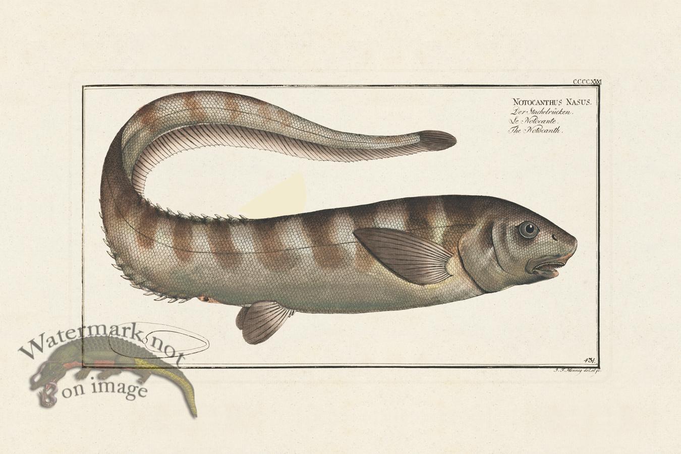 Giclee Reproductions of fish by Marcus Elieser Bloch Fish. Published from the 1780s through 1795. Printed on acid free cotton rag paper with archival inks. The print size is 12 x 18 inches. Extra info for framing. When framing the print would have around a 9x15 inch mat opening. This is figured from going outside the faux plate mark.
