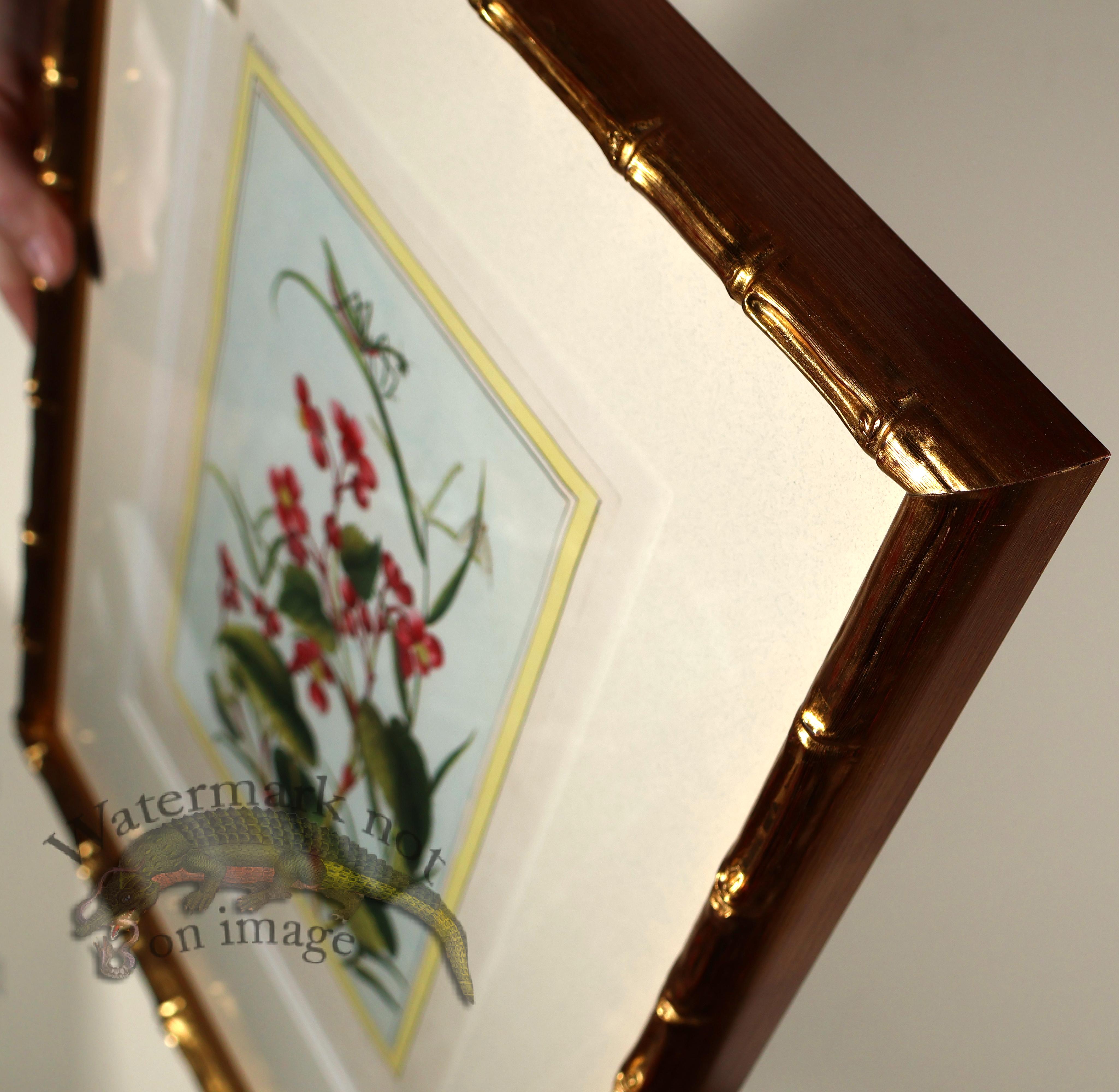 Each antique print is over 245 years old and showcases Buchoz’s elegant compositions and delicate hand coloring. The artwork is presented in museum-quality archival framing, housed in Italian gold bamboo moulding with a refined double mat in conservation clear glass. All materials are fully archival, ensuring long-term preservation and visual depth.
