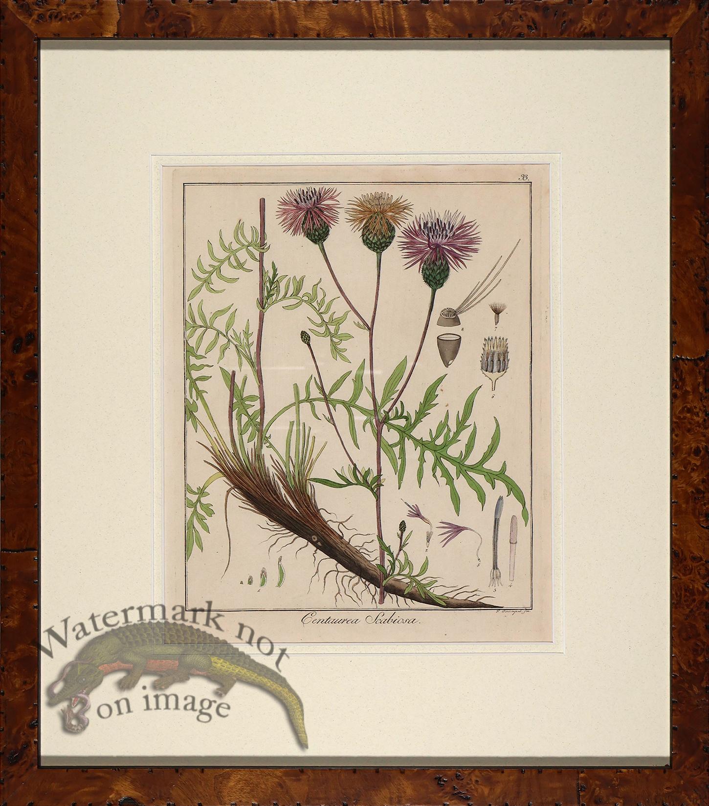 These botanical plates come from Friedrich Gottlob Hayne’s celebrated German medical botany series, published in the early 19th century (1805–1837). Each piece features a Latin plant name and a finely detailed reference-style illustration, combining scientific purpose with a timeless, collected look. Beautifully presented in a burl wood frame with double matting for a clean, classic finish.
