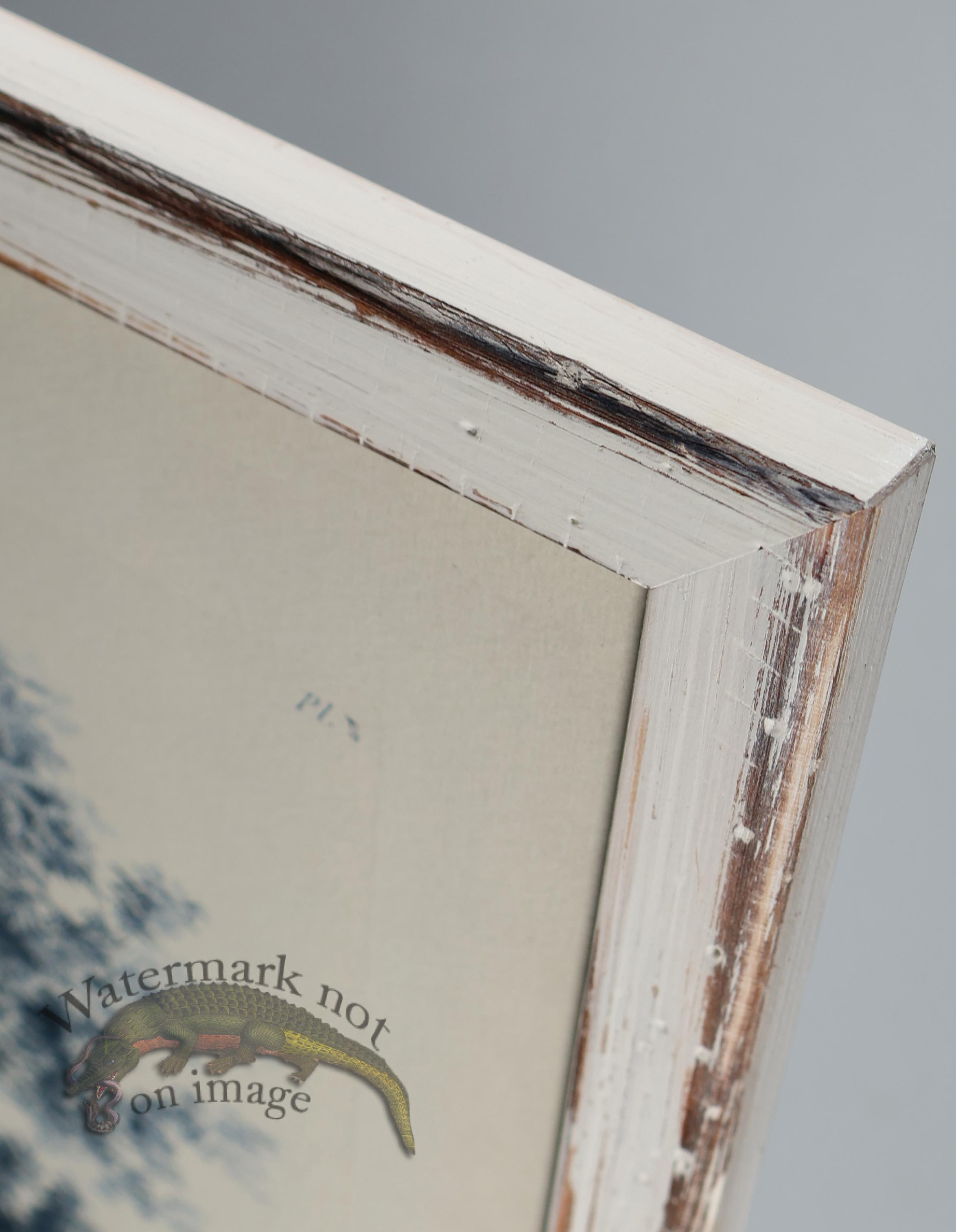 This CFA Edition giclée Defiennes Tree in Blue is beautifully framed in distressed white Italian moulding. This piece measures 19.25" tall x 13.25" wide, with moulding that is 0.5" deep and 0.75" wide.