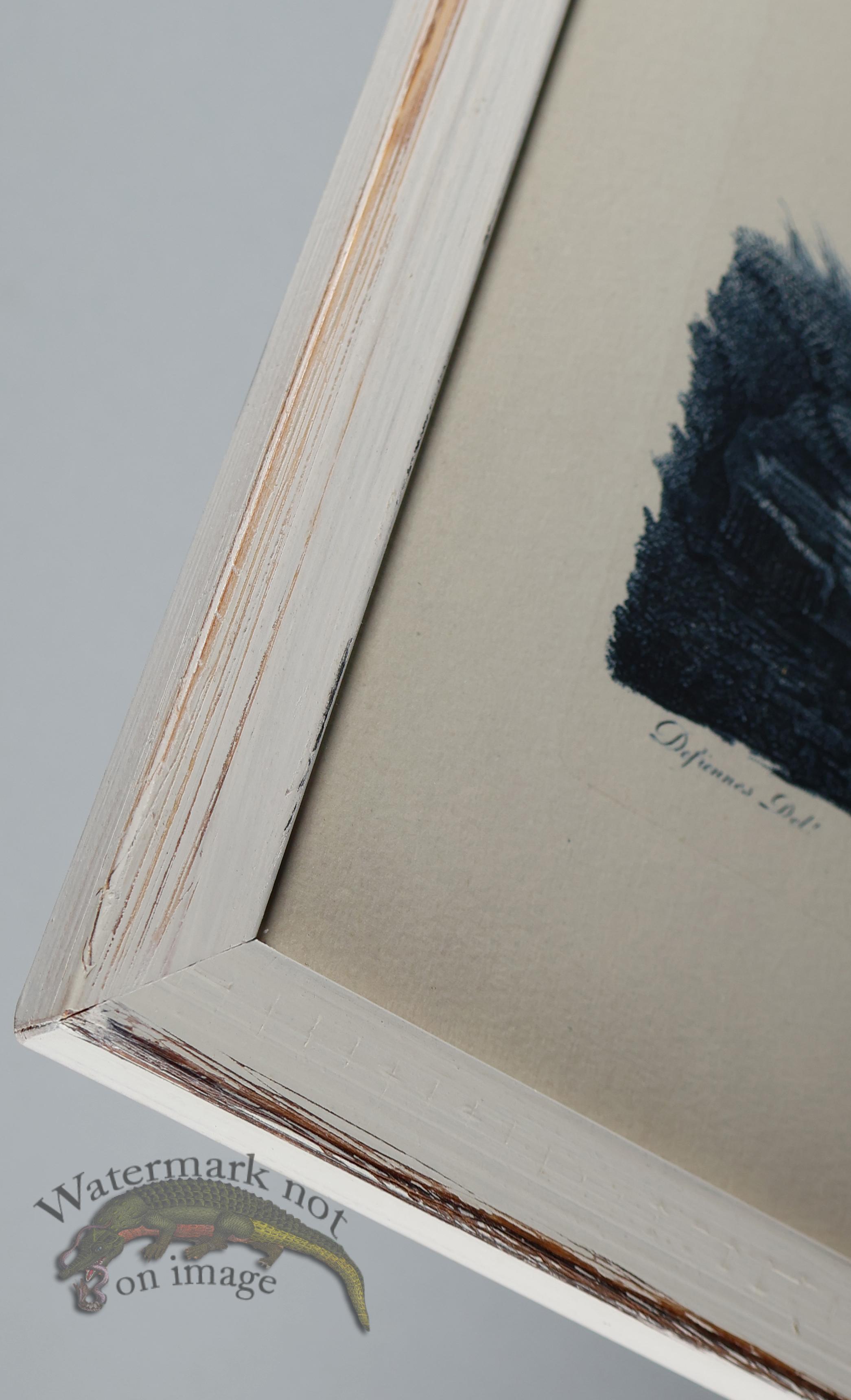This CFA Edition giclée Defiennes Tree in Blue is beautifully framed in distressed white Italian moulding. This piece measures 19.25" tall x 13.25" wide, with moulding that is 0.5" deep and 0.75" wide.