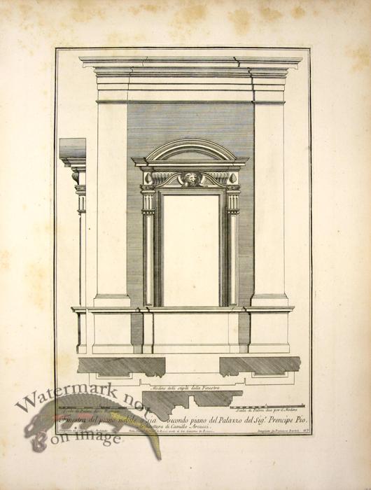 Copper plate engravings of Italian Architecture published in 1721 by Rossi. Nice large size on heavy stock hand made paper. 18.75 inches by 14 inches.