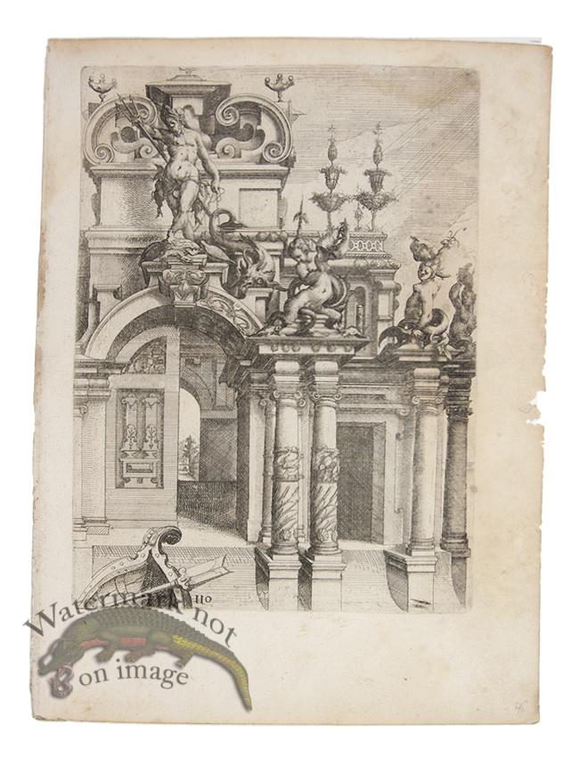 Antique prints from Architectura by Wendel Dietterlin. These copper plate engravings printed on handmade chainlaid paper were published in Strassburg in 1598. Most of his paintings are now lost, and he is best known for his treatise on architectural ornament, Architectura, published in its final edition in Nuremberg in 1598. Each print is approximately 12.25 x 9.25.
