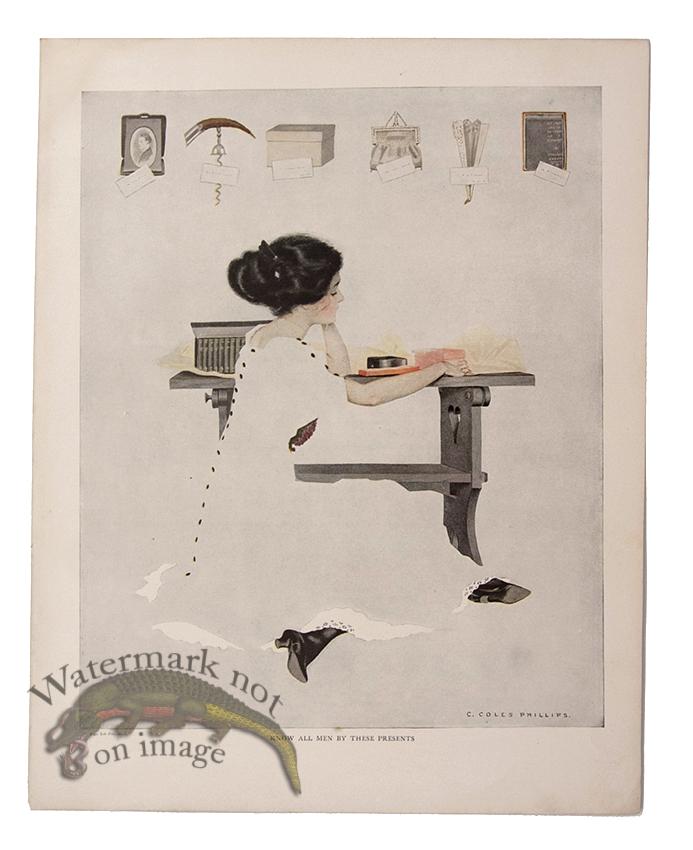 Original antique lithograph print by Cole Phillips from A Gallery of Girls published in 1911. Spotting and aging of prints should be visible in photograph. Each print measures 11.7 x 9.6 inches.