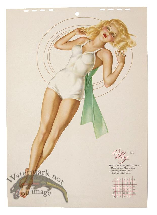 Original vintage pin-up lithographs from Esquire Magazine calendars from the 1940s by Alberta Varga (Alberta Vargas). The top of the calendar page will have holes from binding. Let us know if you need any tips on framing or if you would like us to frame these classic pin-ups for you. Print size is approximately 12 x 8.5 inches.