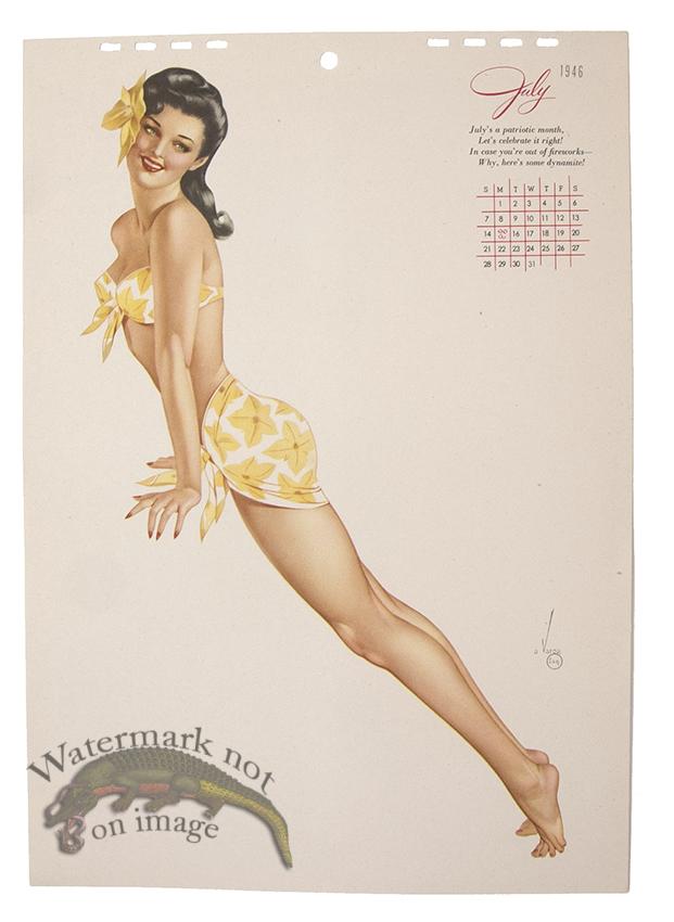 Original vintage pin-up lithographs from Esquire Magazine calendars from the 1940s by Alberta Varga (Alberta Vargas). The top of the calendar page will have holes from binding. Let us know if you need any tips on framing or if you would like us to frame these classic pin-ups for you. Print size is approximately 12 x 8.5 inches.