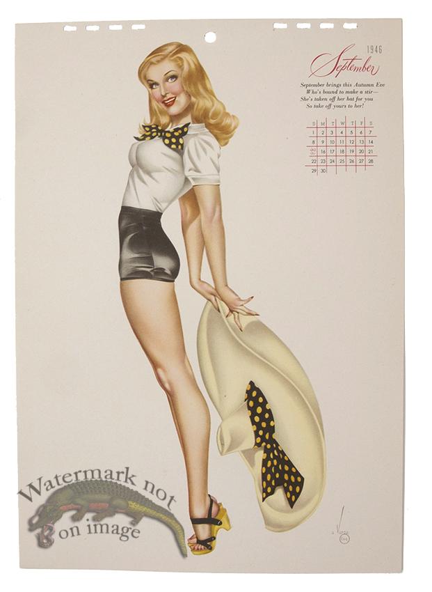 Original vintage pin-up lithographs from Esquire Magazine calendars from the 1940s by Alberta Varga (Alberta Vargas). The top of the calendar page will have holes from binding. Let us know if you need any tips on framing or if you would like us to frame these classic pin-ups for you. Print size is approximately 12 x 8.5 inches.