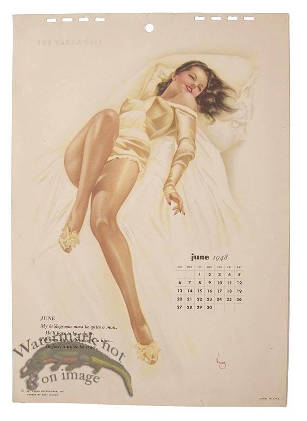 Original vintage pin-up lithographs from Esquire Magazine calendars from the 1940s by Alberta Varga (Alberta Vargas). The top of the calendar page will have holes from binding. Let us know if you need any tips on framing or if you would like us to frame these classic pin-ups for you. Print size is approximately 12 x 8.5 inches.
