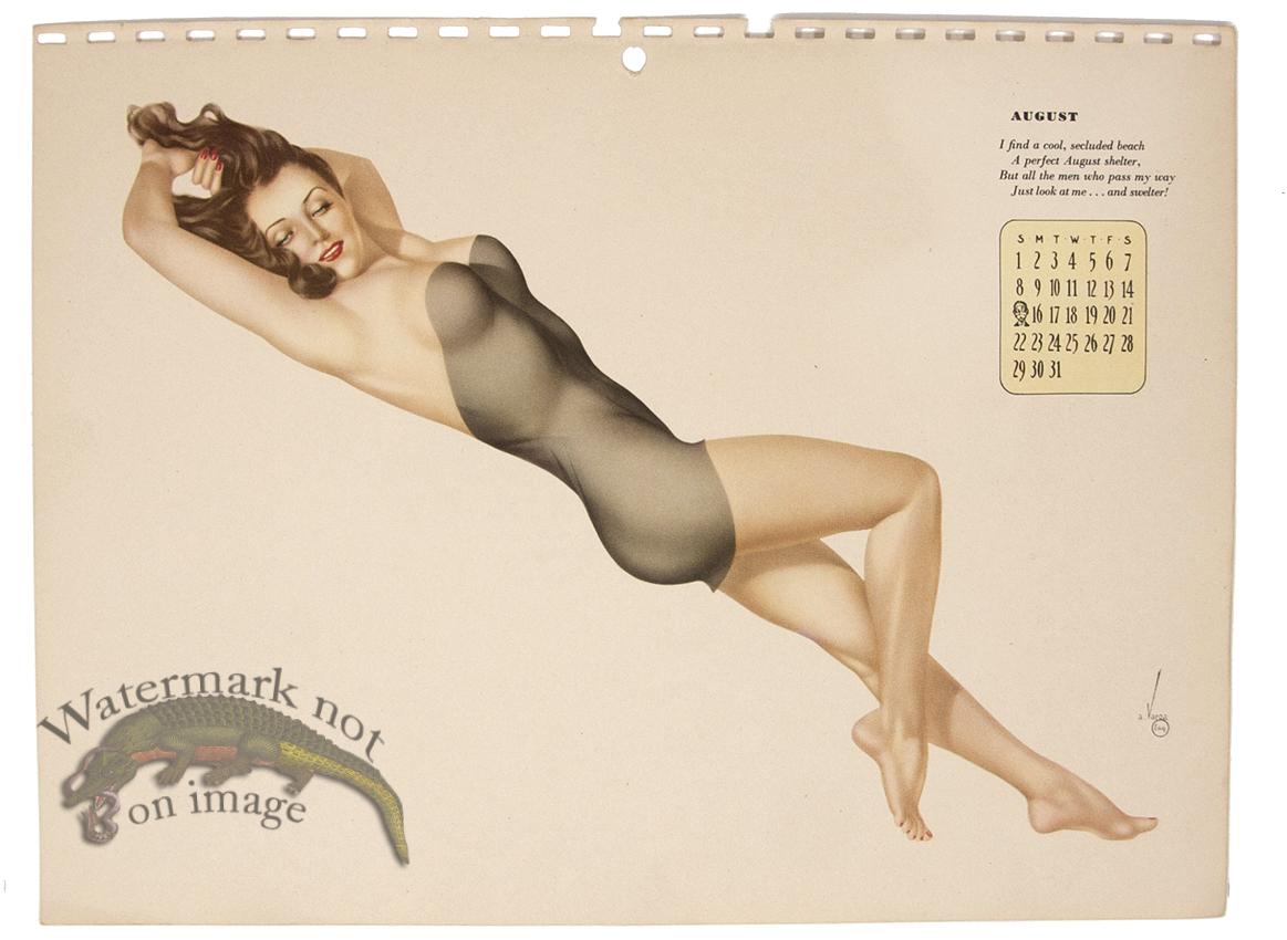 Original vintage pin-up lithographs from Esquire Magazine calendars from the 1940s by Alberta Varga (Alberta Vargas). The top of the calendar page will have holes from binding. Let us know if you need any tips on framing or if you would like us to frame these classic pin-ups for you. Print size is approximately 12 x 8.5 inches.